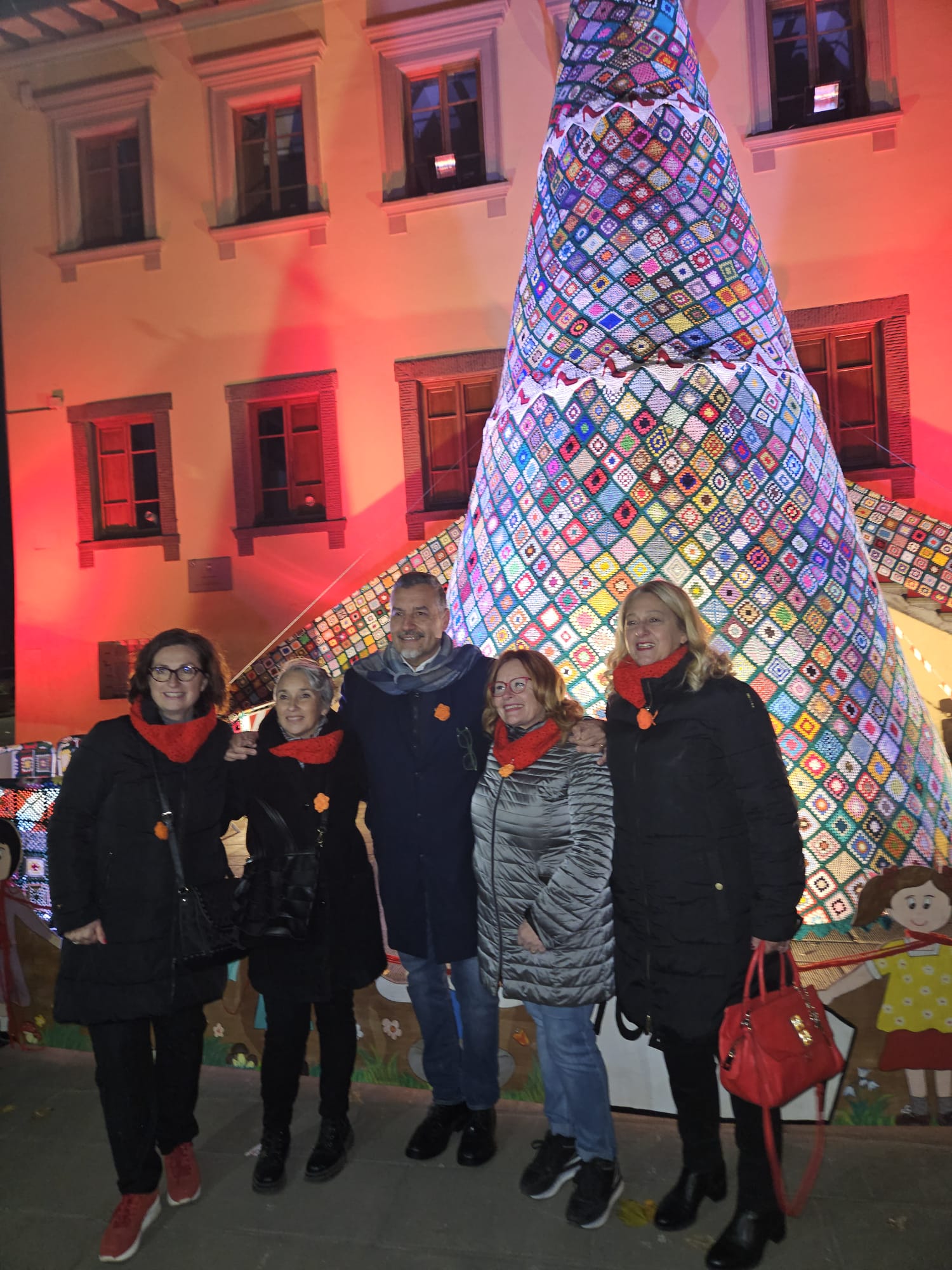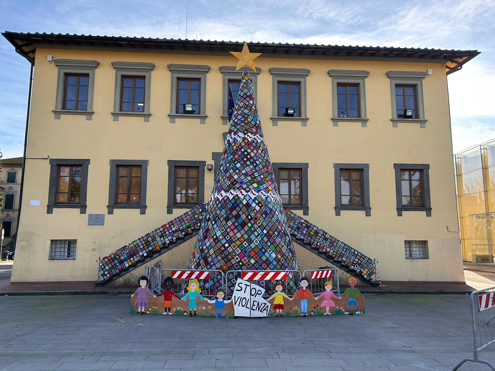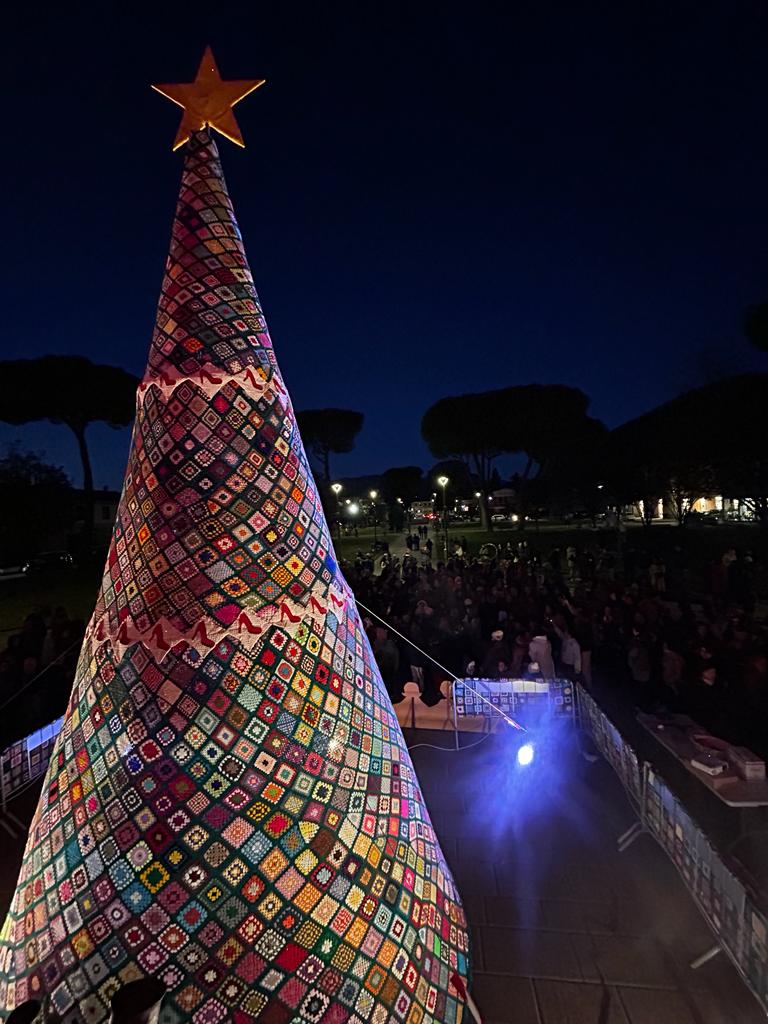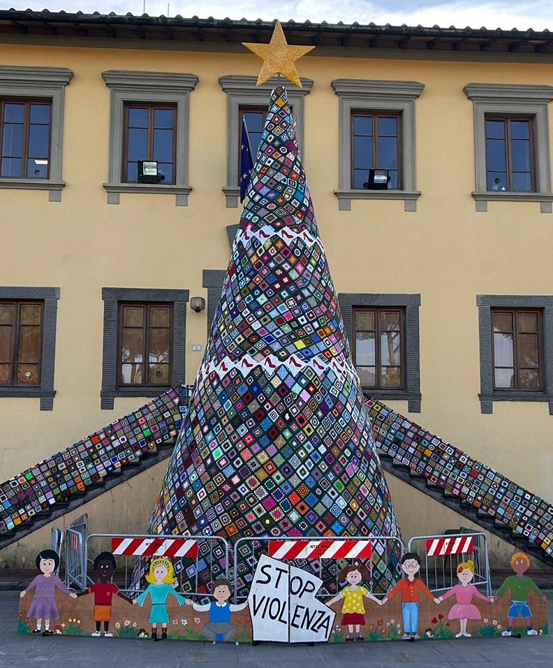 Il 25 novembre, Giornata internazionale per l'eliminazione della violenza contro le donne, è stato inaugurato in piazza Felice Orsi l’albero di Natale fatto con le mattonelle di uncinetto.