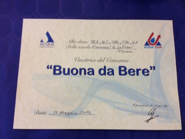 Venerdì 27 maggio 2016 si è tenuta al PALAZZO DELLE ESPOSIZIONI di Empoli la festa per la 14ª edizione di ACQUE S.P.A. Sono risultate vincitrici del concorso “BUONA da BERE” le classi 3A-3C-4B-5A-5B della scuola GIORGIO LA PIRA,per gli elaborati presentati.
