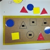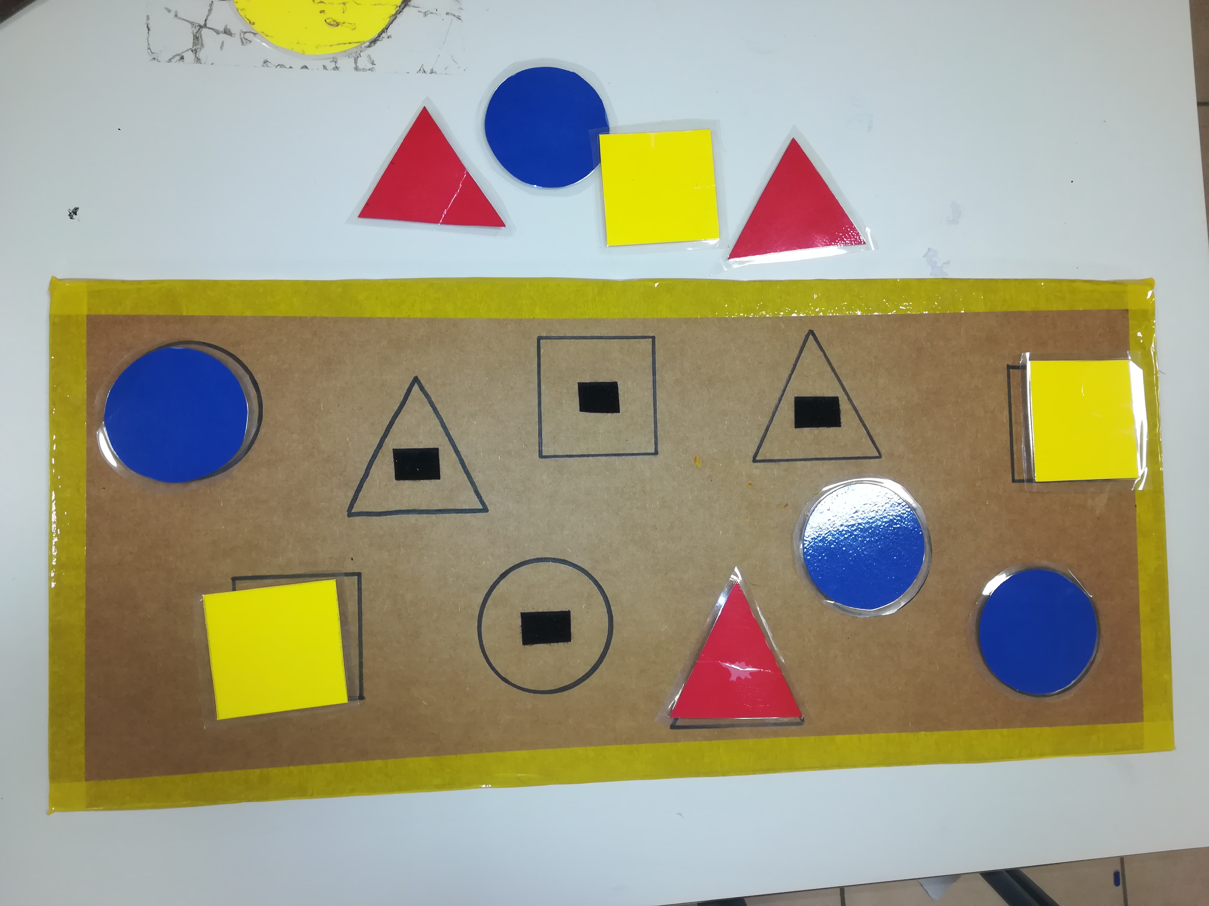 Strumento da usare individualmente, costutuito da una base di cartoncino rigido sulla quale sono disegnate figure geometriche (cerchio, triangolo, quadrato) e da figure geometriche plastificate.I bambini devono trovare le figure corrispondenti e sovrapporle.