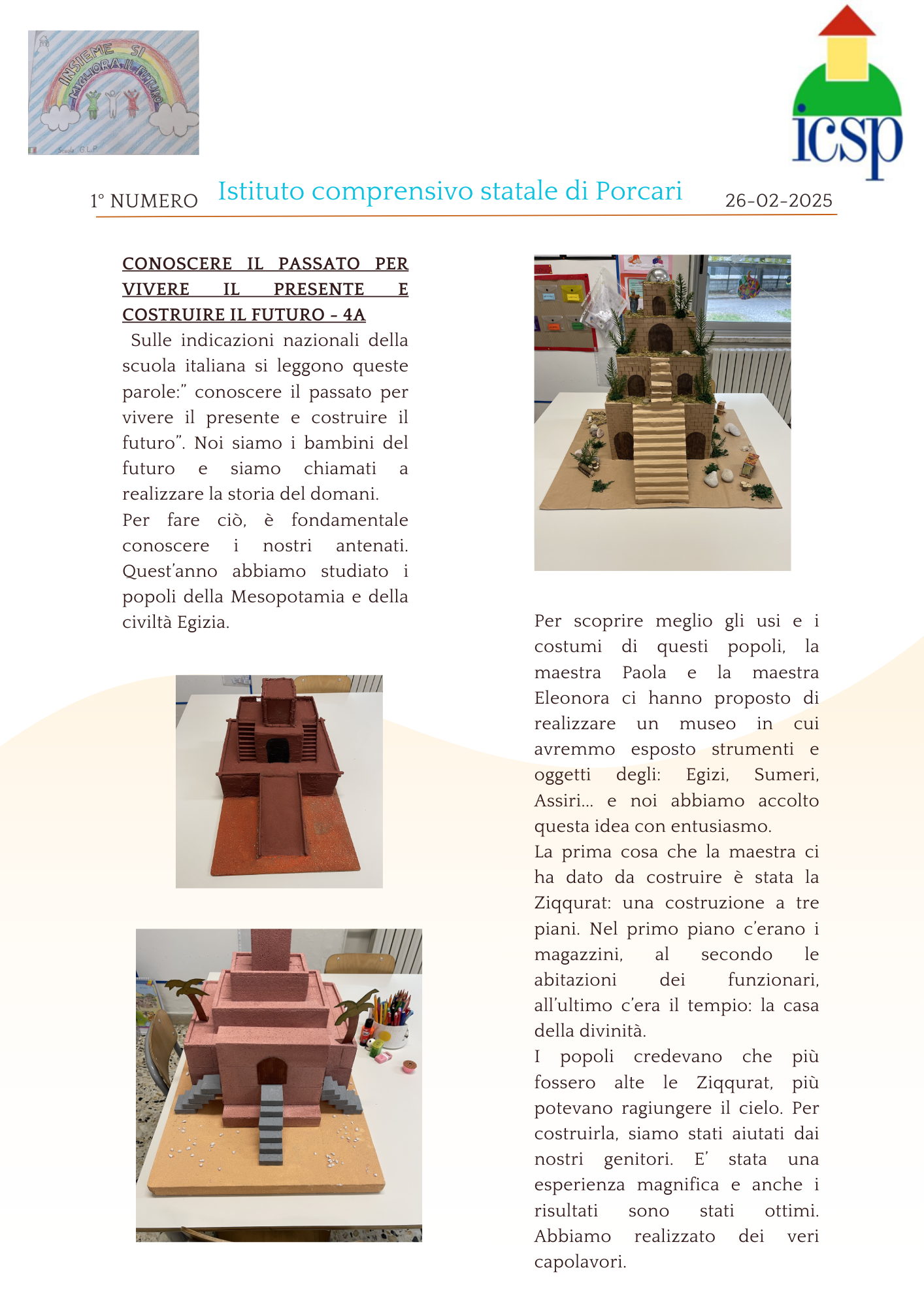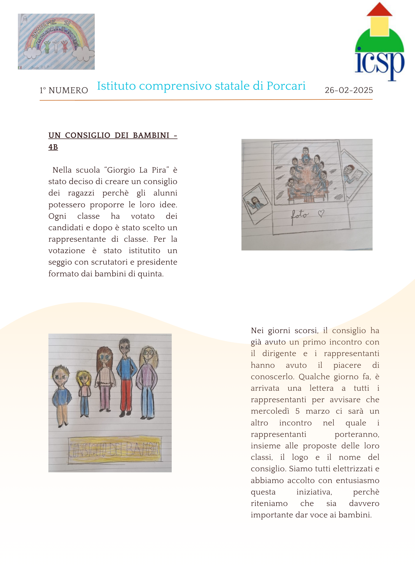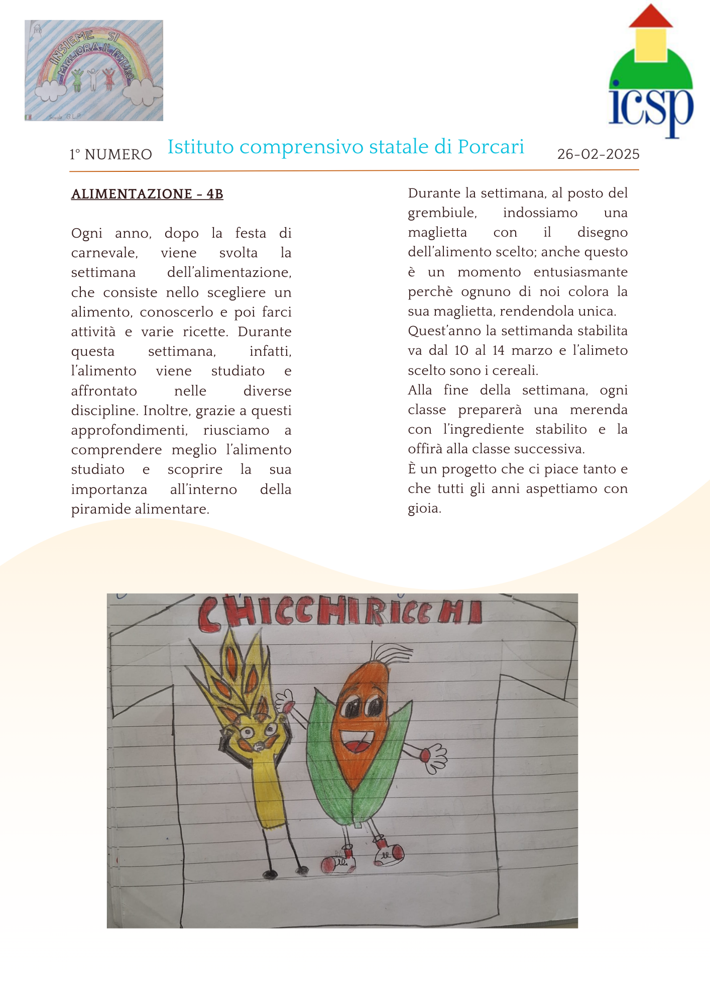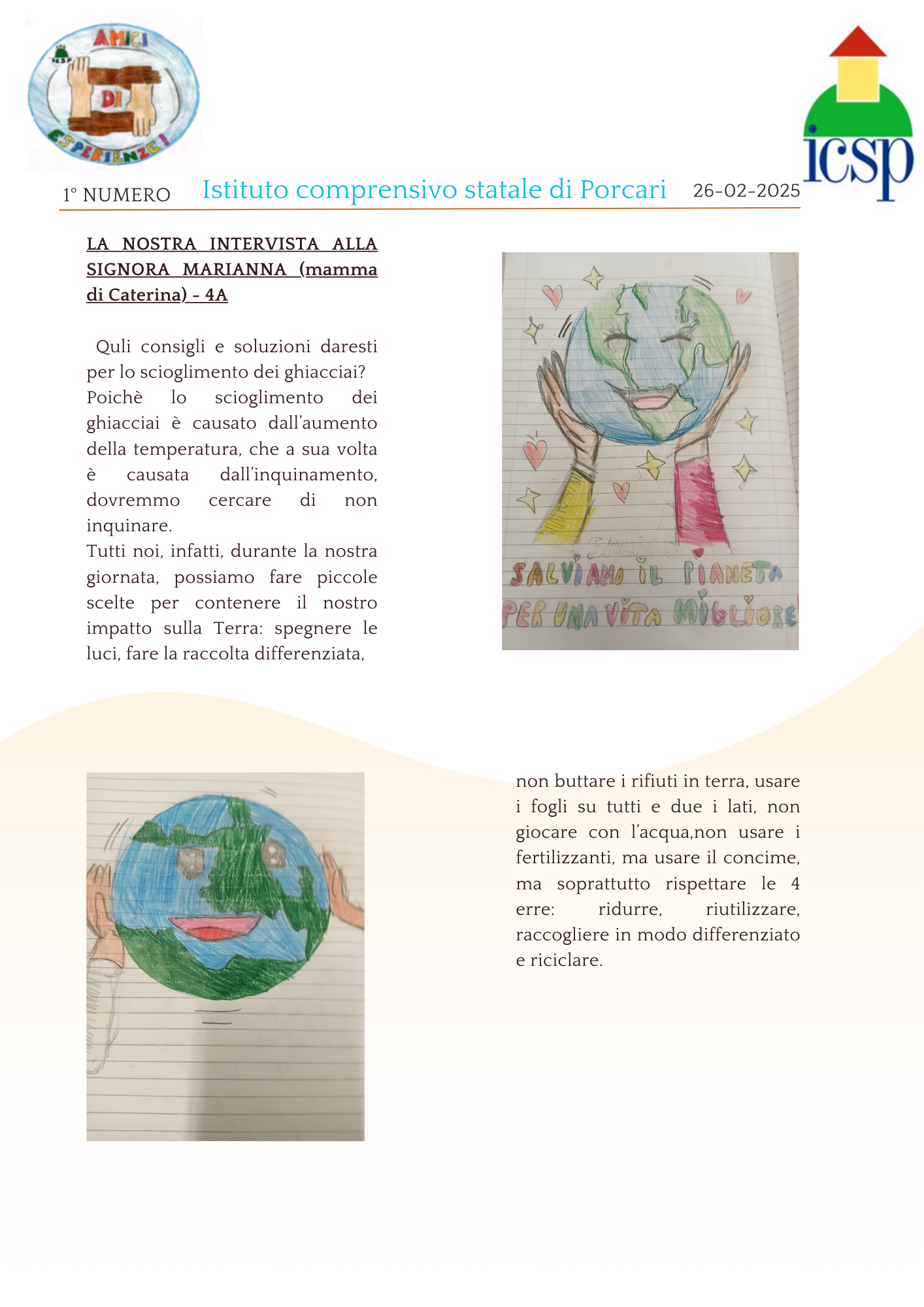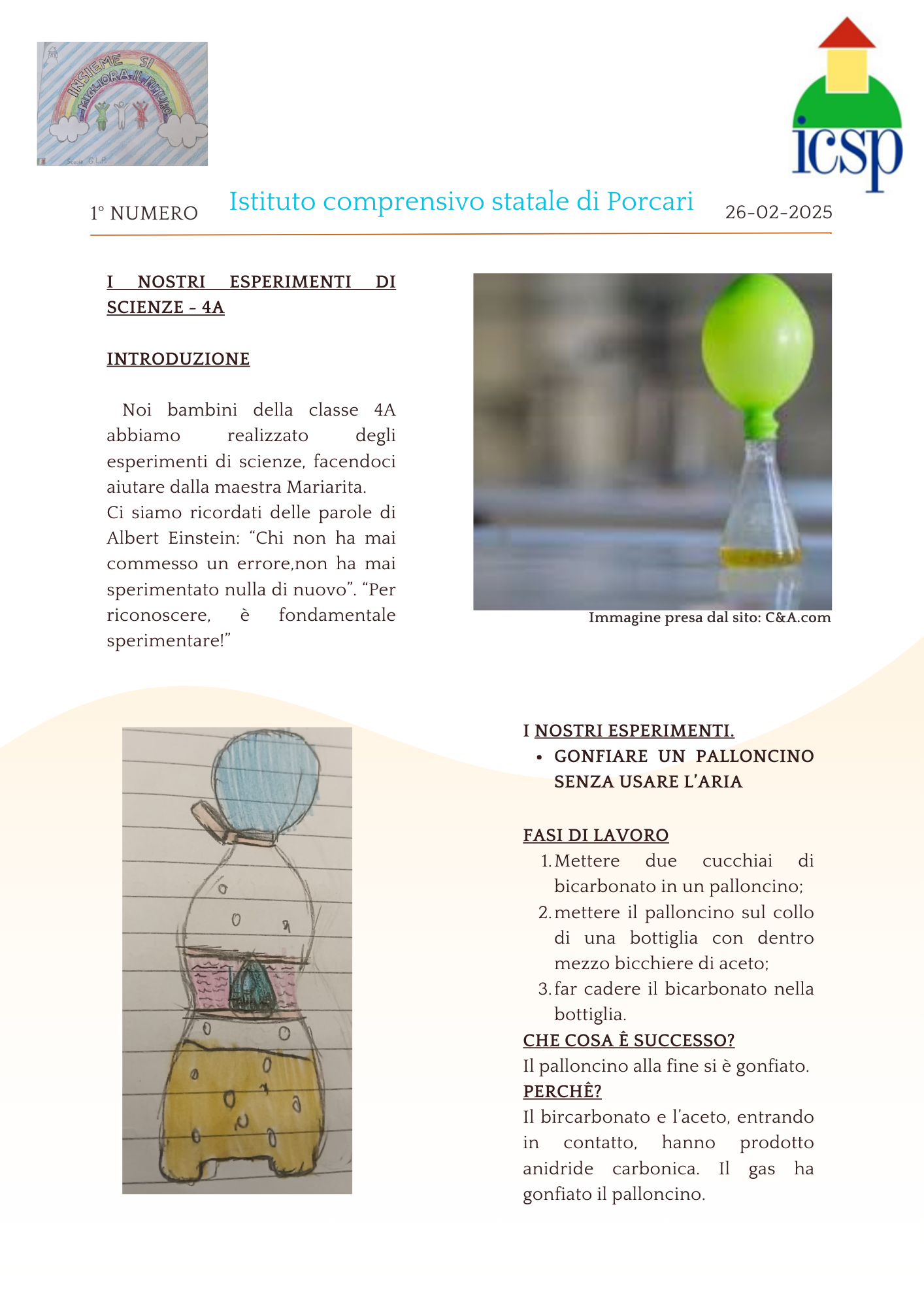 Noi siamo gli alunni delle classi quarte della scuola primaria Giorgio La Pira di Porcari, abbiamo avuto l'idea di scrivere un giornalino scolastico. Il nostro giornalino si chiamerà "Amici di esperienze".
