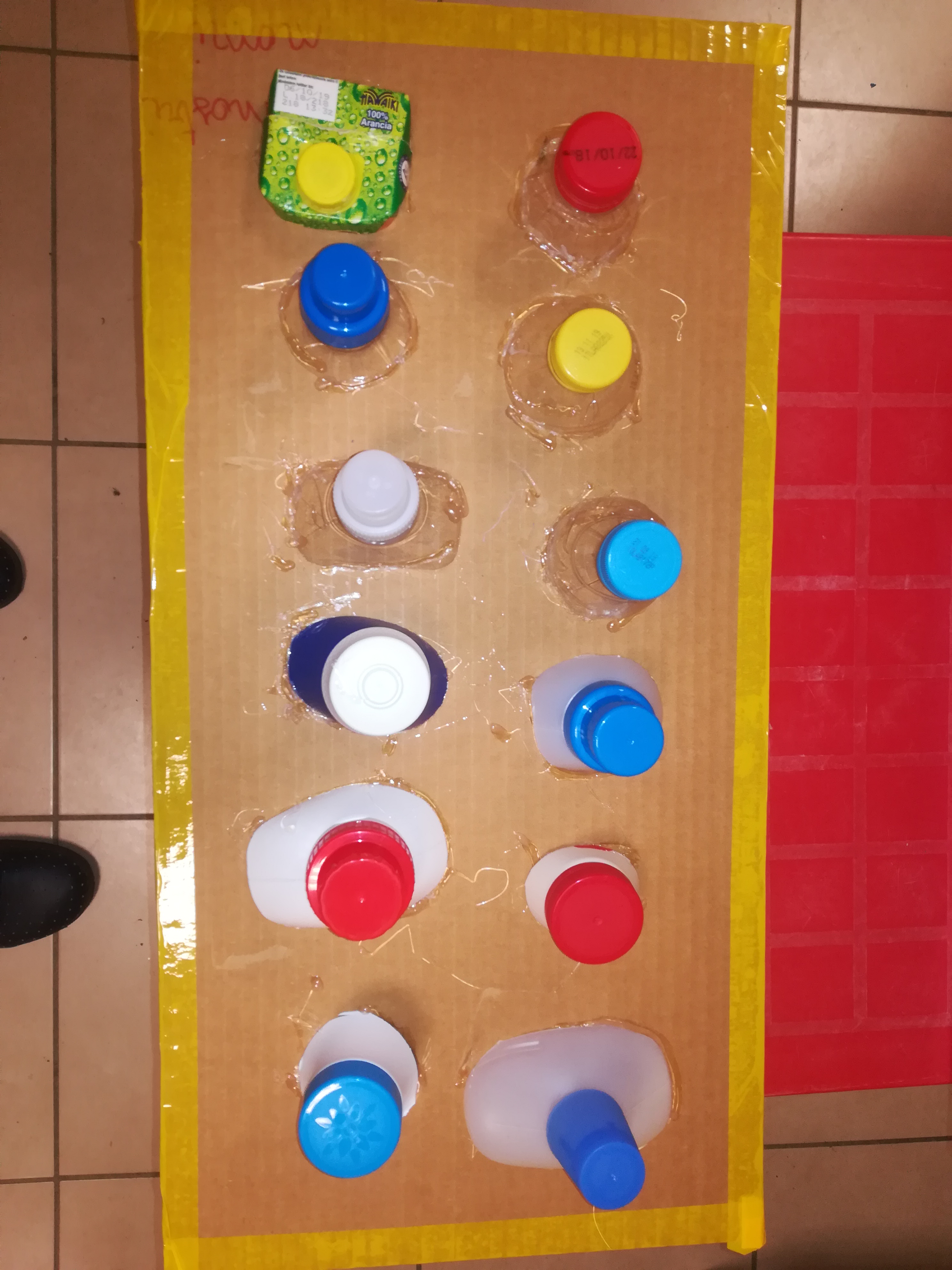 Strumento costituito da una tavoletta di cartone rigido, sulla quale sono incollate le parti superiori di bottiglie di varie dimensioni , dotate dei rispettivi tappi.