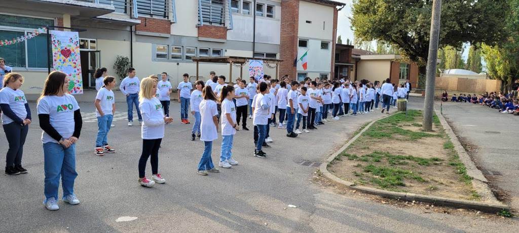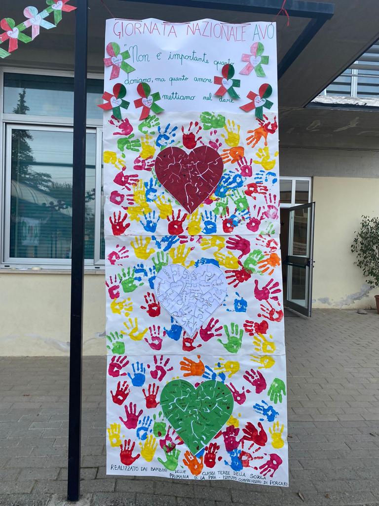 In occasione della XIV Giornata Nazionale dell’AVO (Associazione Volontari Ospedalieri), le Scuole Primarie dell’Istituto Comprensivo di Porcari e il Dirigente scolastico Filippo Guidi, hanno ospitato nel cortile della scuola la presidente dell’Associazione, una delegazione di volontari e il Sindaco Leonardo Fornaciari.