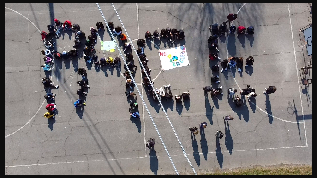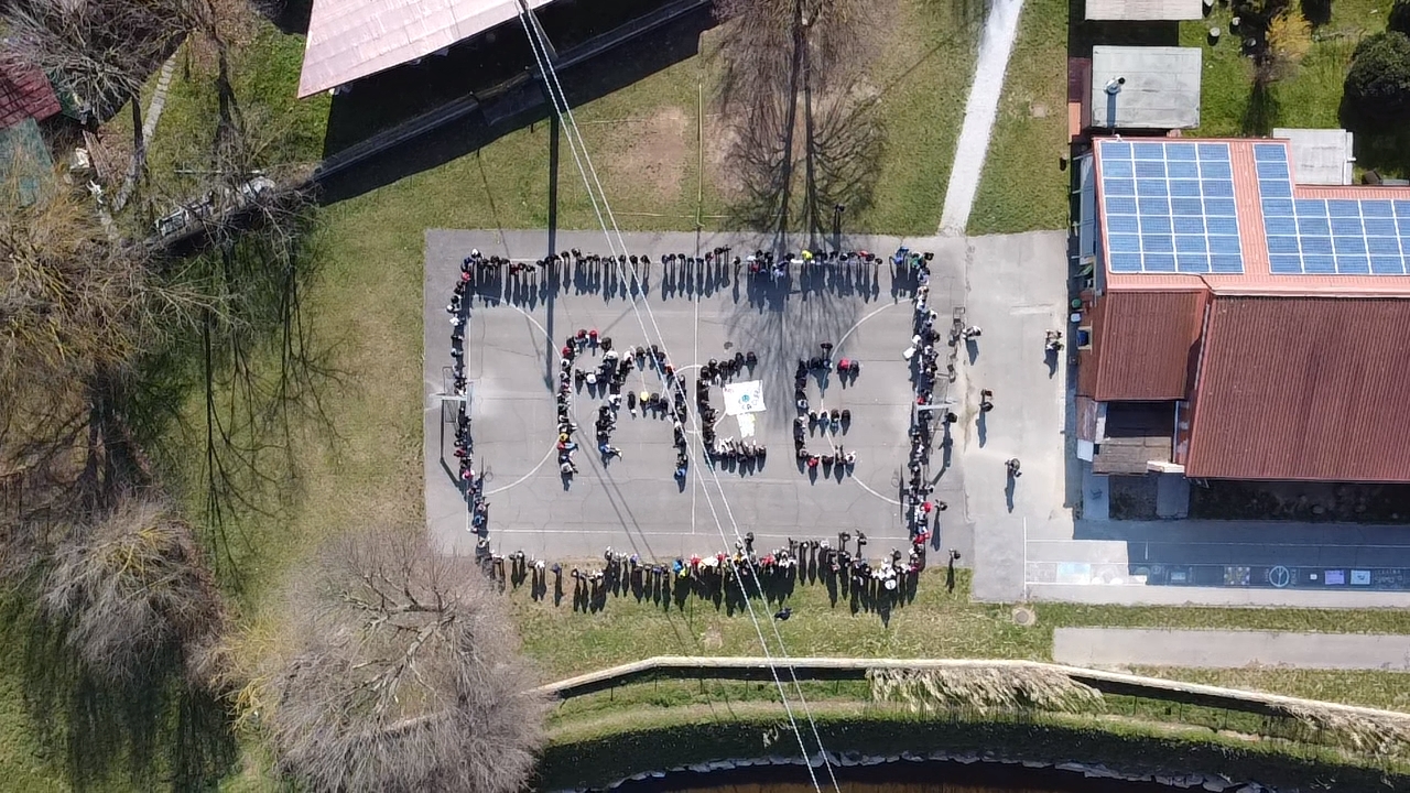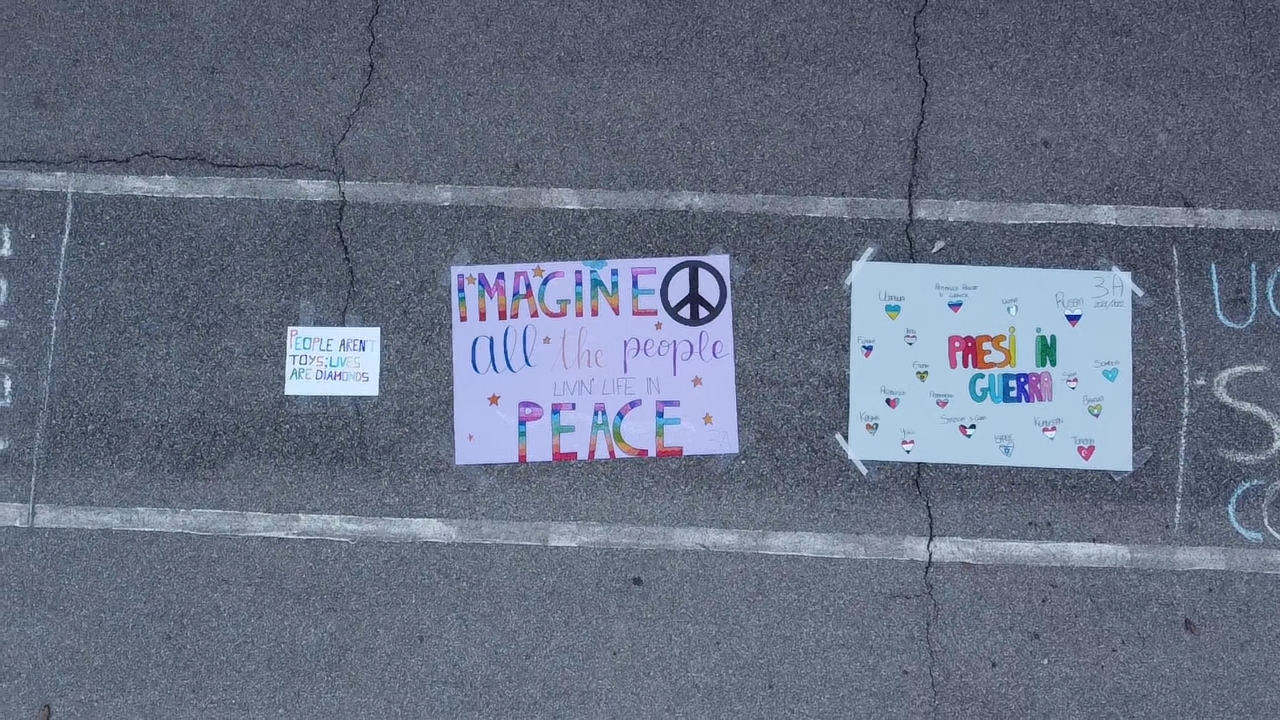 Le alunne e gli alunni escono a frotte dalle aule; le voci, le risate e gli sguardi sono allegri ed emozionati. Non è il solito disordine della ricreazione o quello frenetico in seguito al suono dell’ultima campanella quotidiana. Il fiume colorato e allegro di ragazze e ragazzi esce in modo ordinato e pare avere un corso ben preciso. I più grandi, le terze, vanno al centro del campo da basket della scuola e si mettono seduti, gambe incrociate. Le seconde classi e i più piccoli, quelli delle prime, dispongono sulla pista di atletica cartelloni e fogli colorati. Oggi alla Scuola Secondaria di Primo Grado E. Pea di Porcari, alunni, docenti e personale A.T.A hanno sospeso il normale corso delle lezioni per dire a voce alta una sola parola: Pace. È proprio Pace la parola che le ragazze e i ragazzi di terza formano, nel mezzo del campo sportivo, con i loro corpi; una scritta enorme e viva di sguardi pieni di domande e speranze. Le altre classi hanno disposto i cartelloni preparati nei giorni precedenti a questa iniziativa scolastica nata dalla volontaria necessità dell’istituto di Porcari di manifestare il netto rifiuto di ogni forma di guerra e il desiderio di pace. I messaggi realizzati da tutte le classi contengono espressioni di solidarietà al popolo ucraino che in questi giorni sta vivendo una vera e propria tragedia umanitaria; vi sono richiami alla Costituzione con l’articolo 11: “L’Italia ripudia la guerra come strumento di offesa alla libertà degli altri popoli e come mezzo di risoluzione delle controversie internazionali”, disegni che raffigurano i colori e i simboli della pace così come citazione di poesie e canzoni contro la guerra. Tutti hanno partecipato con le proprie emozioni a creare un evento che ha unito le intenzioni e i cuori di tutta la scuola in un unico e potente pensiero di pace. Anche il Sindaco di Porcari Leonardo Fornaciari ha partecipato all’evento accompagnato dal Dirigente dell’Istituto Filippo Guidi «I nostri ragazzi della Scuola Enrico Pea per la Pace. È stato un momento breve ma intenso – ha scritto il Sindaco alla fine della manifestazione – Bello vederli sorridenti ma molto consapevoli di quello che sta succedendo. Osservarli “costruire” la parola Pace con i loro corpi come per dire ‘ci mettiamo in campo anche noi’. Un lunghissimo applauso di speranza ha accompagnato questo momento che hanno vissuto con i loro compagni. Grazie alla scuola, agli insegnanti e grazie ai nostri ragazzi». Una mobilitazione commovente nella speranza che la pace, quella vera, arrivi prima che le scritte di gesso colorate inneggianti alla fratellanza dei popoli nel cortile della scuola vengano cancellate dal trascorrere dei giorni.