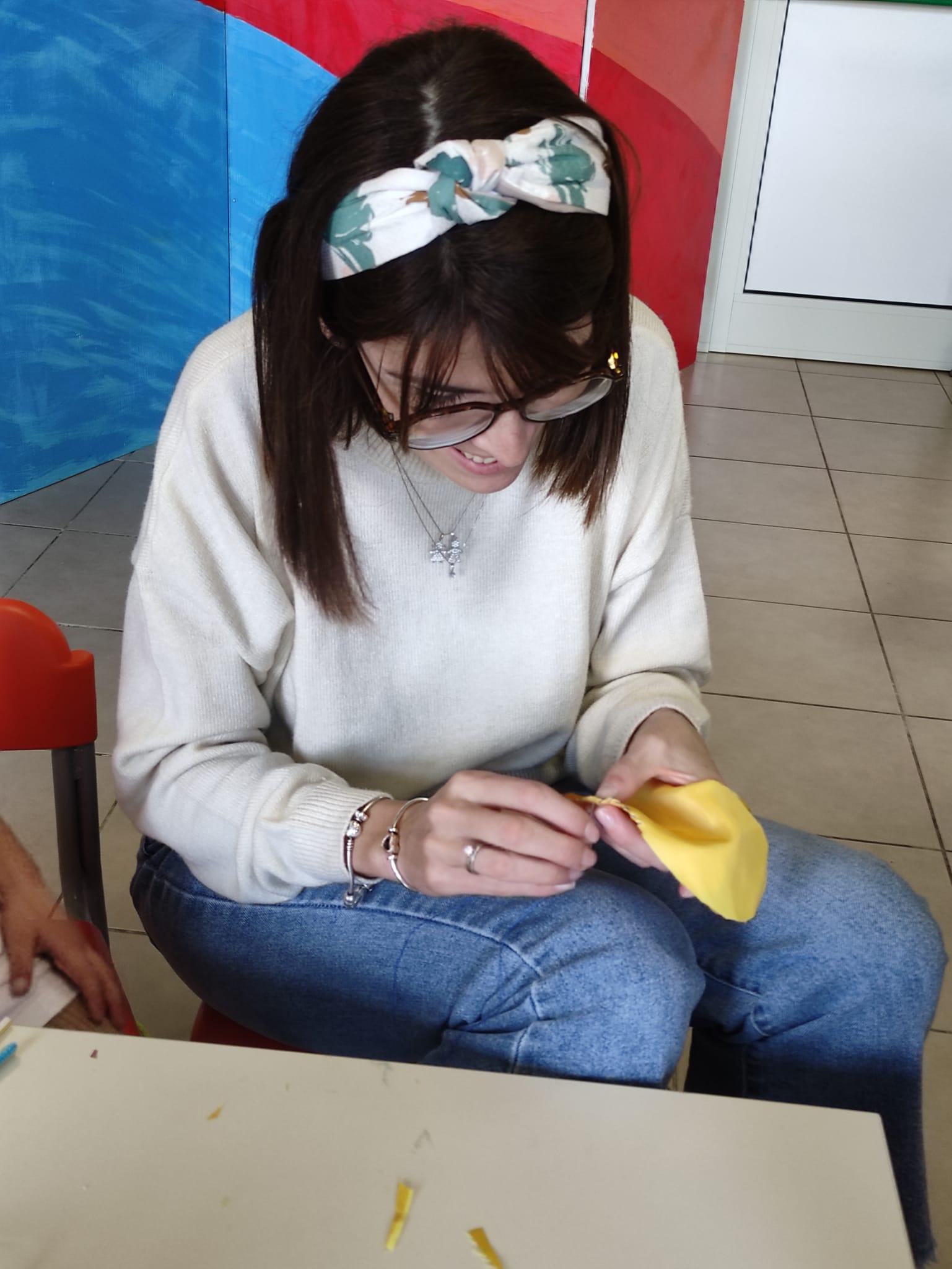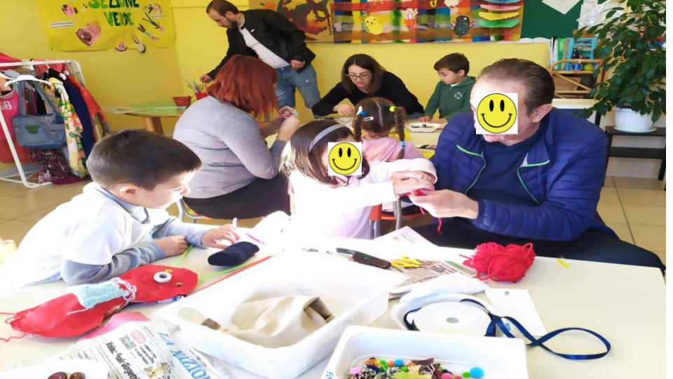 Durante il laboratorio, adulti e. bambini si sono cimentati nel creare una pulcetta con materiale di recupero messo loro a disposizione.