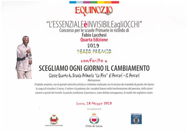 All’interno di una manifestazione che ha coinvolto scuole di tutta la provincia di Lucca la classe 4ªA della scuola La Pira ha vinto il terzo premio al concorso “L’essenziale è invisibile agli occhi” ricevendo la somma di 100 euro che potrà spendere per l’acquisto di beni e servizi legati alle attività scolastiche.