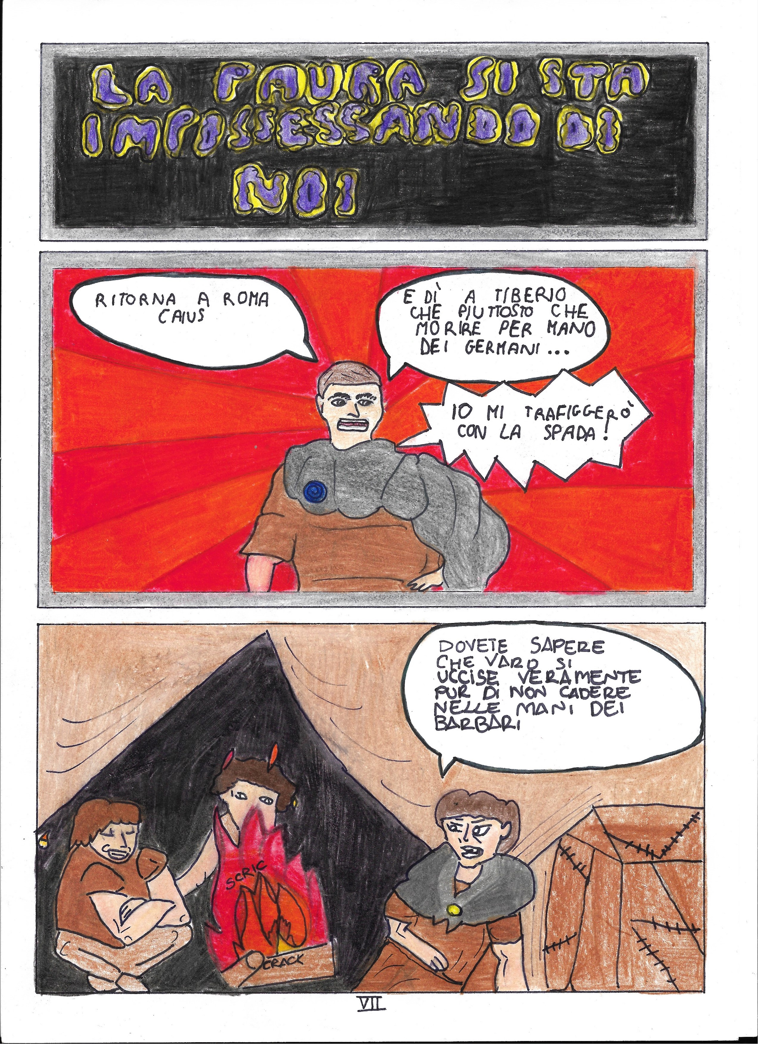 la 5°B si è occupata della grafica, disegnando i personaggi, l’ambiente e colorando le varie tavole in cui è stata divisa la storia.