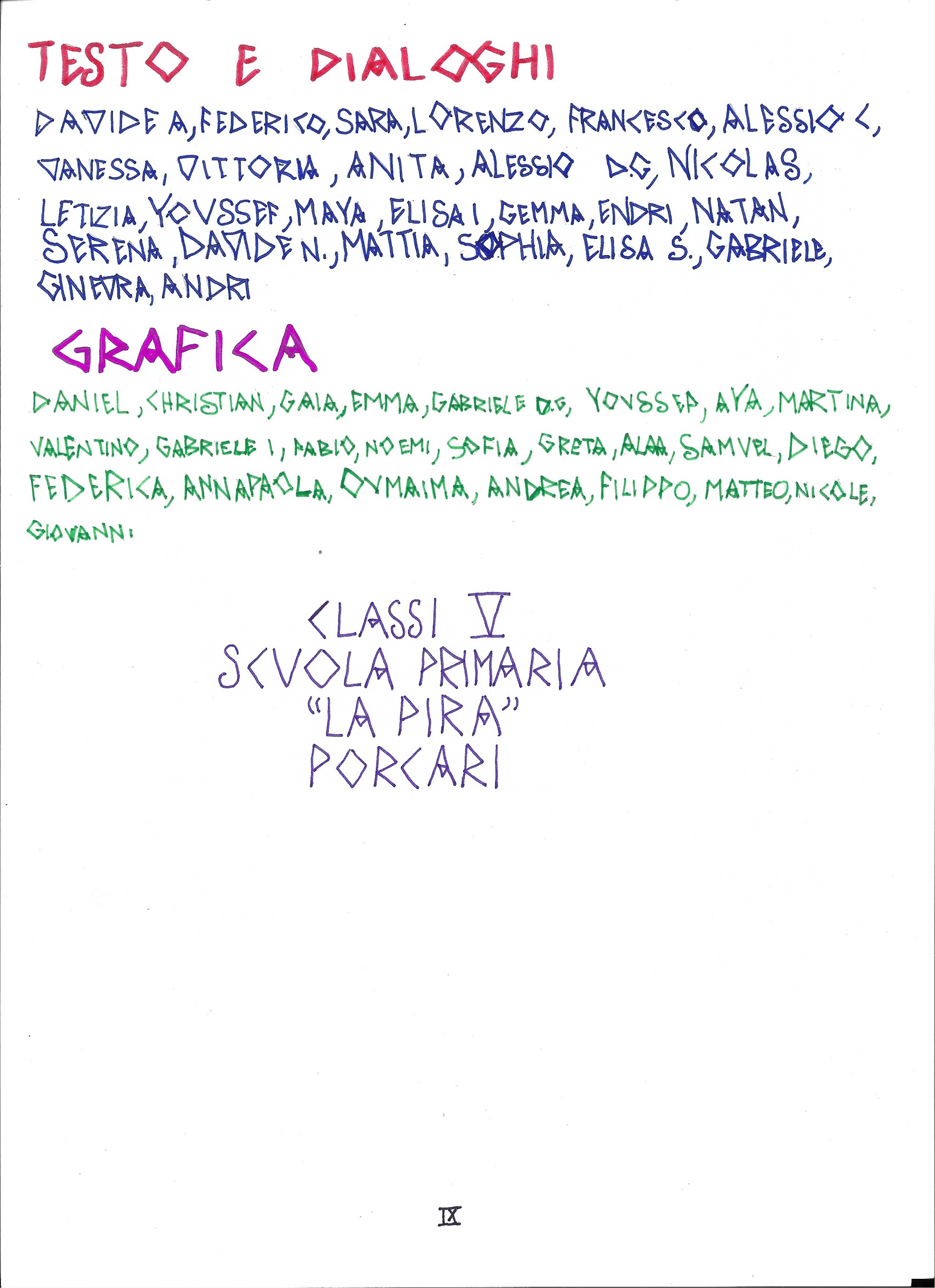la 5°A ha elaborato la storia, rispettando le caratteristiche date dal regolamento del concorso, e ha inventato i dialoghi;