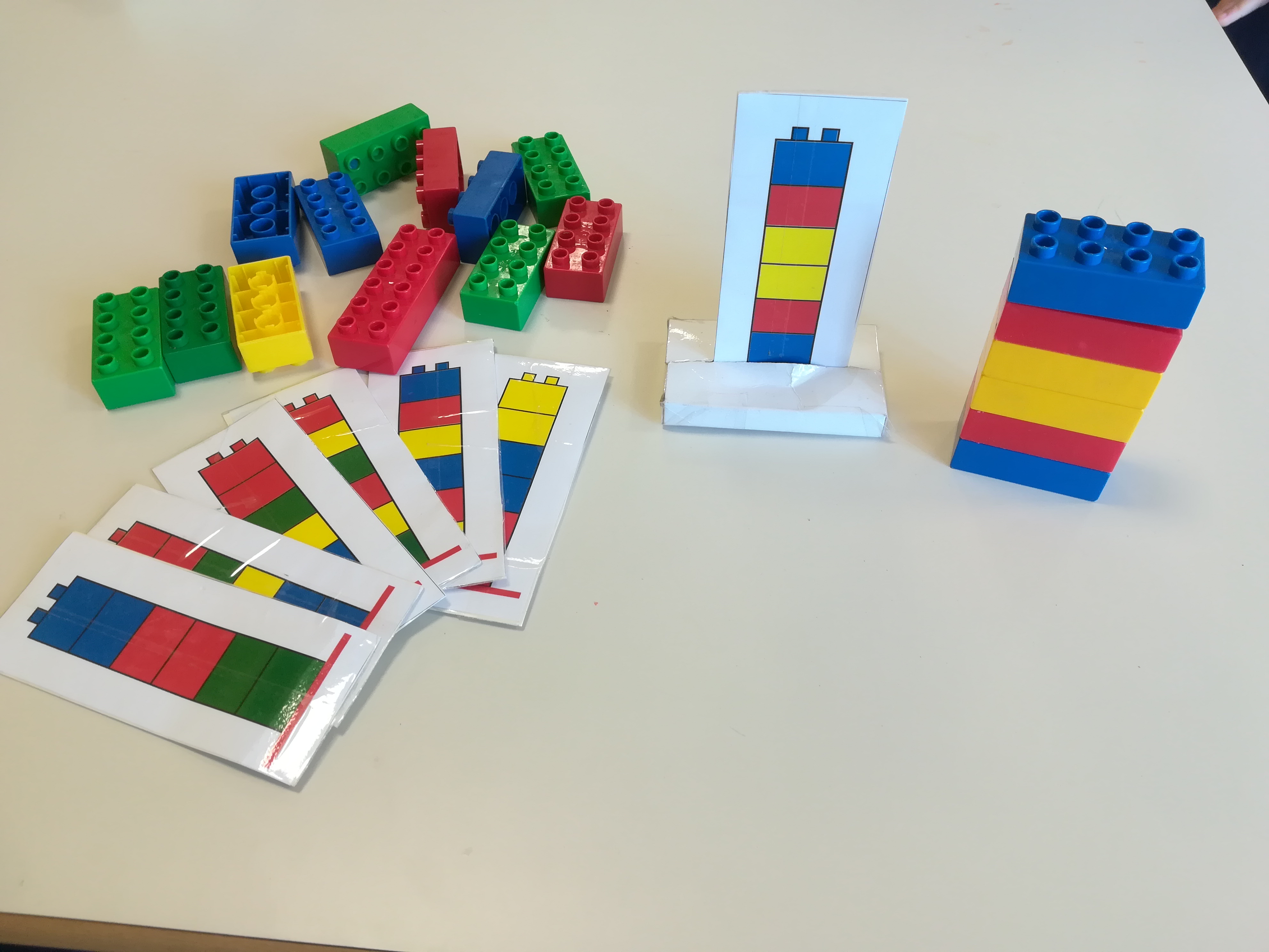 Strumento da usare individualmente costituito da sagome di cartone proporzionate alla realtà, supporto di cartone per tenere le sagome in posizione verticale e costruzioni di vari colori.I bambini devono costruire delle torri seguendo i modelli di riferimento.